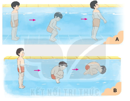 Hình nào dưới đây thể hiện động tác đạp đáy bể (hồ) bơi nhô đầu kết hợp thở trong nước?
