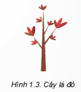 Hình 1.3 có 3 loại đối tượng cần vẽ là: lá, cành và cây. Lá gồm các loại: lá đỏ, lá xanh, lá vàng.