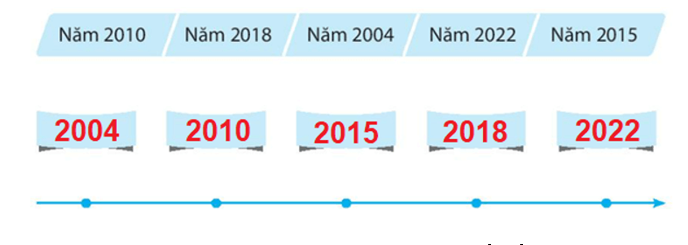 Viết các mốc thời gian sau đây vào các ô trống trên đường thời gian theo thứ tự đúng.