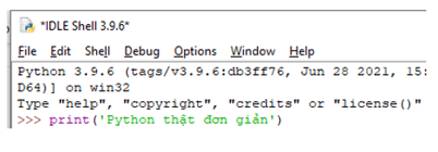 Câu F3 trang 20 SBT Tin học 10: Em hãy viết câu lệnh trong cửa sổ Shell để hiển thị ra màn hình dòng chữ “Python thật đơn giản!”