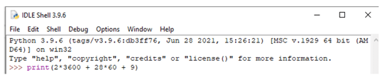 Câu F5 trang 21 SBT Tin học 10: Trong Python, phép toán cộng được thể hiện bằng dấu “+”, phép toán nhân được thể hiện bằng dấu “*”. Ví dụ: 2*3+4 có giá trị bằng 10. Em hãy viết câu lệnh trong cửa sổ Shell để đổi 2 giờ 28 phút 9 giây sang đơn vị giây.