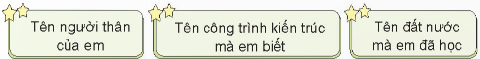 Tìm 2 – 3 tên riêng theo yêu cầu ghi trên mỗi thẻ: