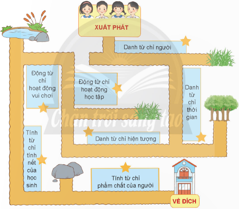 Tìm 2 – 3 từ theo yêu cầu ở mỗi thẻ có trên đường đi