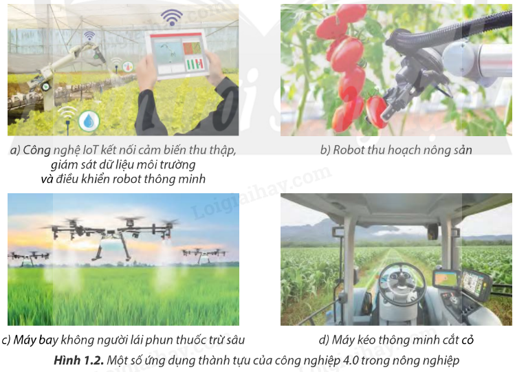 Quan sát Hình 1.2 và kể tên các máy móc, thiết bị, công nghệ được ứng dụng trong nông nghiệp.