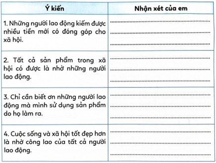 4. Đồng tình, nhờ có người lao động chúng ta mới có sản phẩm để đáp ứng nhu cầu xã hội. Từ đó cuộc sống và xã hội mới ngày càng phát triển và tốt đẹp hơn.