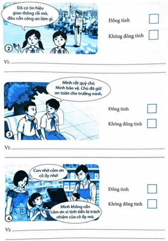 Em hãy đánh dấu x vào ô đồng tình hoặc không đồng tình với những lời nói, việc làm dưới đây và giải thích vì sao.