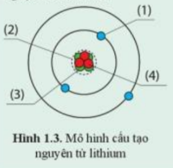 Quan sát hình 1.3 và hoàn thành thông tin chú thích các thành phần trong cấu tạo nguyên tử lithium