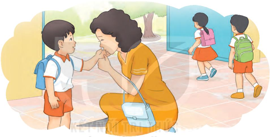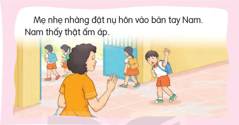 Ngày đầu đi học, Nam hồi hộp lắm. Mẹ nhẹ nhàng đặt một nụ hôn vào bàn tay Nam và dặn: