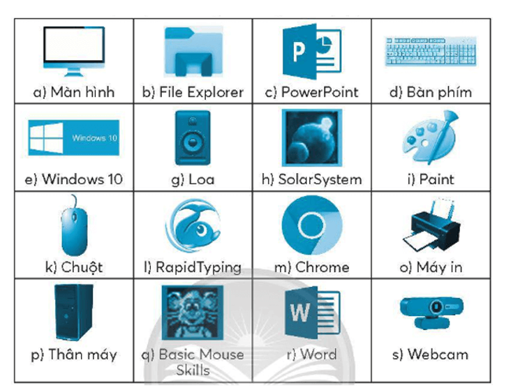 - Các thiết bị phần cứng gồm: a, d, g, k, o, p, s