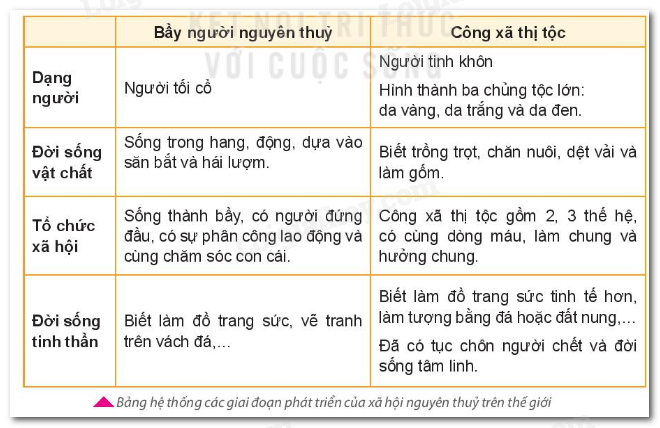 Xã hội nguyên thủy trải qua hai giai đoạn phát triển là Bầy người nguyên thủy và Công xã thị tộc