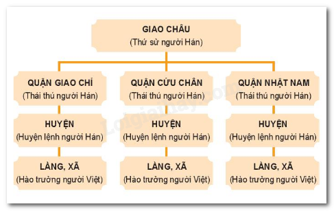 - Về bộ máy cai trị: chia thành các đơn vị hành chính như châu - quận, dưới đó là huyện, Chính quyền từ cấp huyện trở lên đề do người Hán nắm giữ.