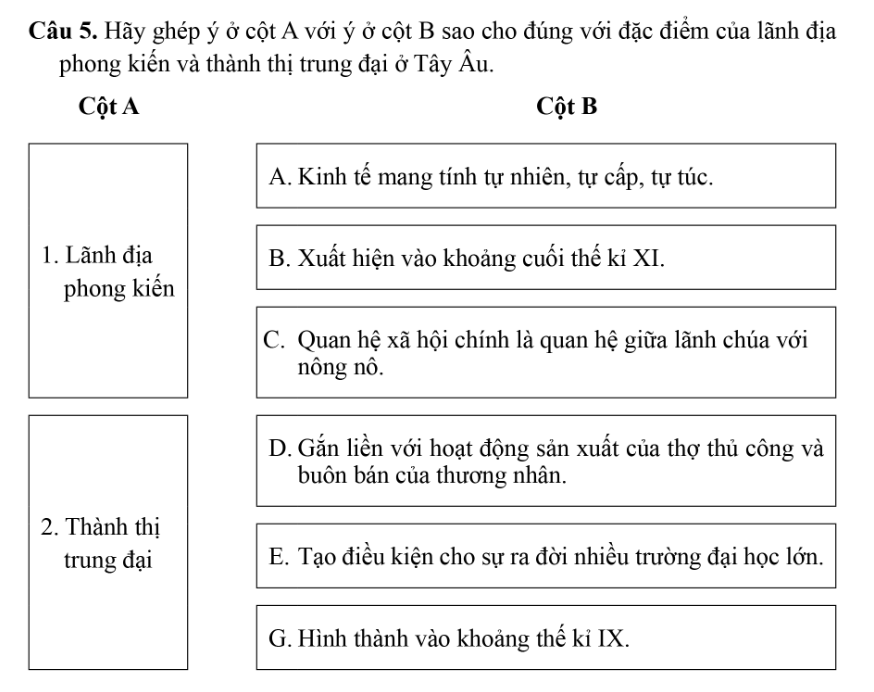 Câu 4. Nội dung nào sau đây không phải là vai trò của thành thị Tây Âu thời trung đại?