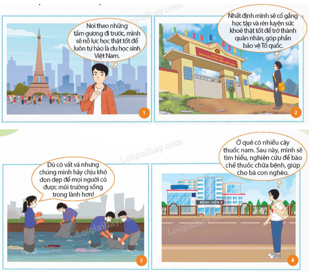Em quan sát kĩ các hình ảnh và dựa vào kiến thức đã học trong bài để phân tích suy nghĩ và việc làm của các nhân vật, từ đó rút ra bài học cho bản thân