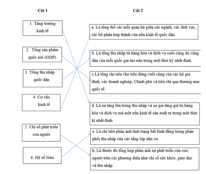 Em hãy nối mỗi nội dung ở cột 2 với mỗi thuật ngữ ở cột 1 để được một khái niệm đúng.