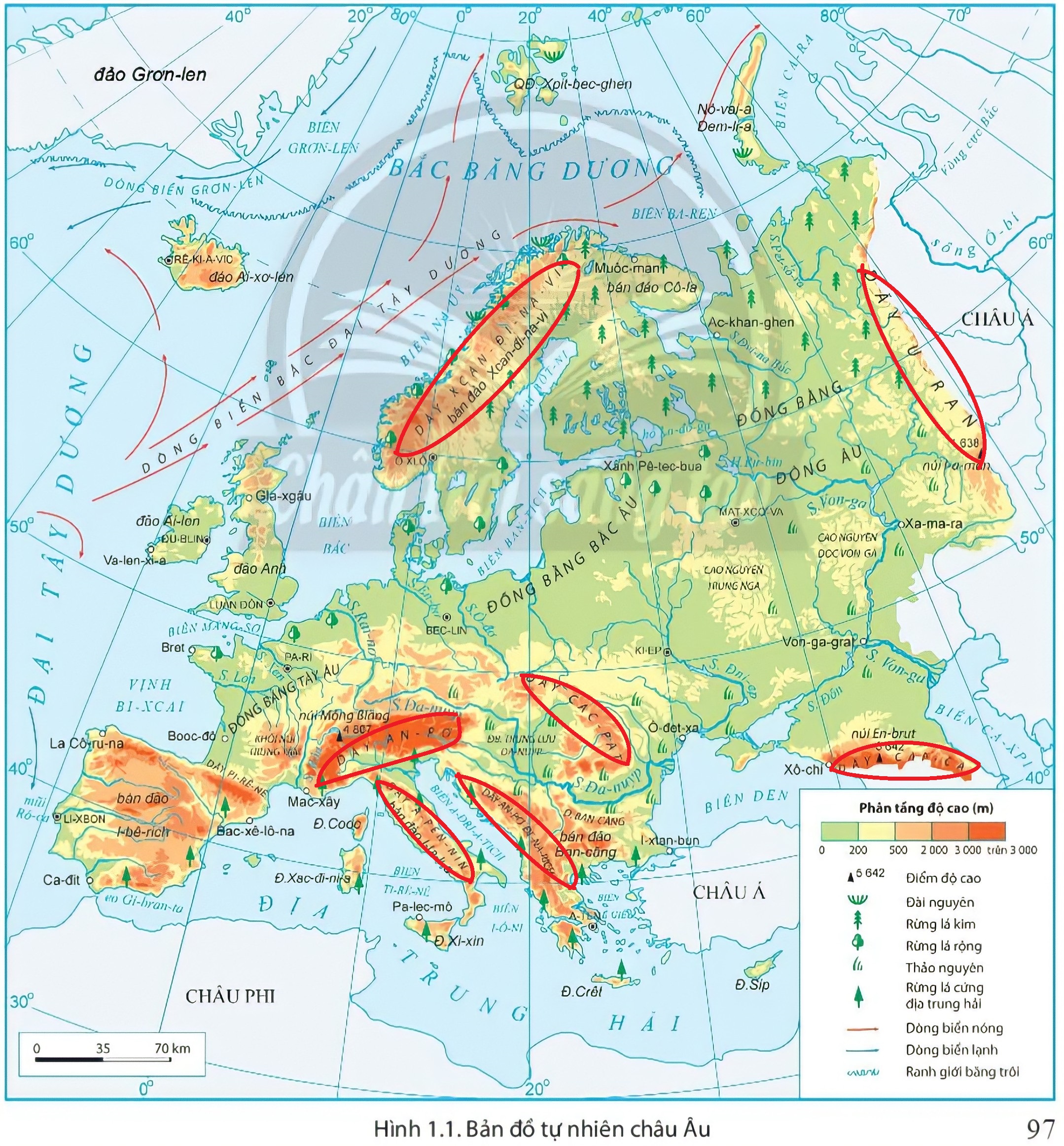 - Các đồng bằng, các dãy núi chính ở châu Âu: