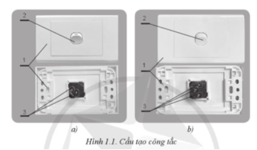 Hình 1.1 thể hiện cầu tạo của hai loại công tắc. Hãy cho biết tên của mỗi loại công tắc và các bộ phân chính của chúng.