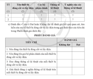 a) Nhận biết, ghi tên thiết bị và các bộ phận chính của thiết bị đóng cắt và lây điện vào cột (2) và (3) của Bảng 1.1.