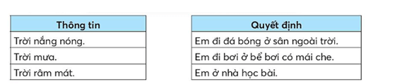 Hãy chỉ ra đâu là thông tin, đâu là quyết định trong các tình huống dưới đây.