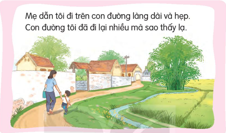Bài đọc kể về cảm xúc của nhân vật tôi khi lần đầu đi học. Mẹ dắt tay nhân vật trên con đường quen thuộc, nhưng hôm đó mọi thứ đều trở nên mới mẻ vì sự thay đổi trong lòng nhân vật tôi. |
