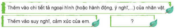+ Suy nghĩ, cảm xúc của em.