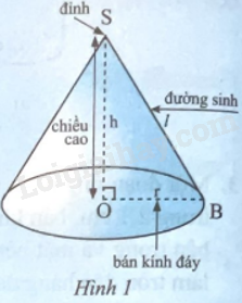 Khi quay tam giác vuông SOB một vòng quanh cạnh góc vuông SO cố định ta được một hình nón (Hình 1).