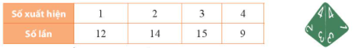 Gieo một con xúc xắc 4 mặt 50 lần và quan sát số ghi trên đỉnh của con xúc xắc, ta được kết quả như sau: