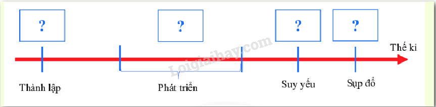 Em hãy xác định các mốc thời gian (theo thế kỉ) trong sơ đồ bên dưới về quá trình hình thành, phát triển và sụp đổ của vương quốc Phù Nam.