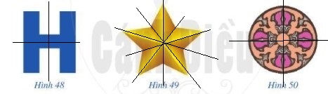 Trong các hình 48,49,50, hình nào có trục đối xứng? nếu là hình có trục đối xứng, hãy chỉ ra trục đối xứng của hình đó