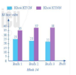 Khóa bồi dưỡng về kĩ thuật công nghiệp(KTCN) và khóa bồi dưỡng về Kĩ thuật nông nghiệp(KTNN) được tổ chức trong 10 buổi liên tiếp. Giữa mỗi buổi học, mỗi học viên đều dùng đúng một cốc nước giải khát. Biểu đồ cột kép ở Hình 14 thống kê số học viên dùng nước giải khát dùng nước giải khát trong ba buổi đầu tiên của mỗi khóa bồi dưỡng.