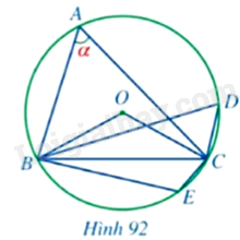 Trong Hình 92, cho các điểm (A,B,C,D,E) thuộc đường tròn (left( O right)).