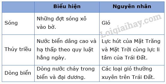 Dựa vào kiến thức đã học về sóng, thủy triều và dòng biển.