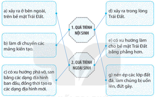 Nhớ lại kiến thức đã học về quá trình nội sinh và quá trình ngoại sinh để làm bài.