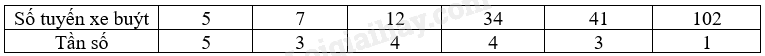 c) Xe buýt tuyến số 5 có tần số cao nhất, xe buýt tuyến số 102 có tần số thấp nhất.