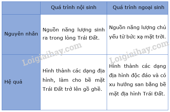 Dựa vào kiến thức về quá trình nội sinh và ngoại sinh: