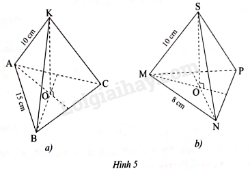 Hãy cho biết tên các mặt bên, mặt đáy, đường cao và độ dài cạnh bên, cạnh đáy của mỗi hình chóp tam giác đều ở Hình 5.