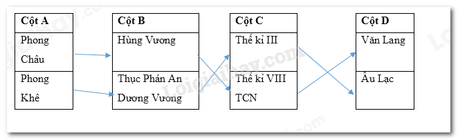 Em hãy nối các dữ kiện phù hợp ở các cột A, B, C, D và viết lại thành câu về sự ra đời của hai nhà nước Văn Lang, Âu Lạc.