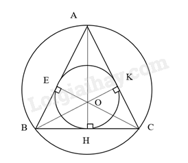a) Kẻ ba đường trung trực AH, BK, CE của tam giác ABC, ba đường đó đồng quy tại điểm O suy ra O là tâm đường tròn ngoại tiếp tam giác ABC, bán kính OA = R.