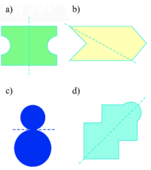 Đường nét đứt ở hình a và d là trục đối xứng. Hai đường ở hình b và c còn lại không phải là trục đối xứng của hình.