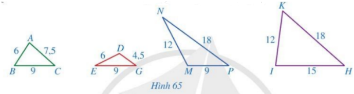 Quan sát Hình 65 và chỉ ra những cặp tam giác đồng dạng: