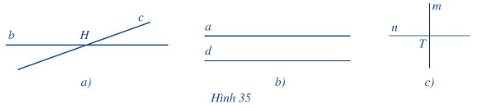 Hai đường thẳng cắt nhau là đường thẳng b và c (giao điểm là H), n và m (giao điểm là T).