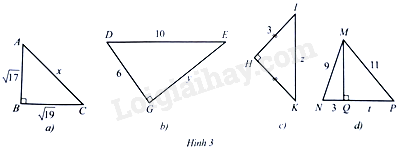 a) \(A{C^2} = A{B^2} + B{C^2}\), suy ra \({x^2} = {\left( {\sqrt {17} } \right)^2} + {\left( {\sqrt {19} } \right)^2} = 36\)