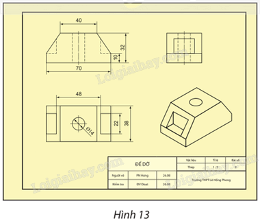Đọc bản vẽ kĩ thuật trong Hình 13.