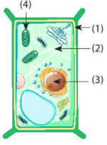1 – màng tế bào, 2 – chất tế bào, 3 – Nhân, 4 – Lục lạp