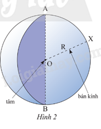 Dựa vào: Khi quay nửa hình tròn tâm O, bán kính R một vòng quanh đường kính AB cố định ta được một hình cầu tâm O, bán kính R.