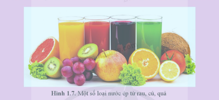 1. Nước ép từ rau, củ, quả như nước ép cam, nước ép cà chua,... (Hình 1.7) có chứa chất dinh dưỡng chính nào? Phân tích vai trò của chất dinh dưỡng này đối với cơ thể.