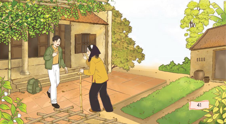 Nói về một lần em đi thăm họ hàng hoặc người thân. Về thăm bà. Đường vào nhà bà được miêu tả bằng những hình ảnh nào. Tìm từ ngữ thể hiện cảm xúc của hai bà chúa khi gặp lại nhau. Những chi tiết nào thể hiện sự quan tâm của bà đối với Thanh. Vì sao mỗi lần trở về bà, Thanh luôn thấy thong thả và bình yên. Kể một vài việc làm thể hiện sự quan tâm, chăm sóc của người thân đối với em.
