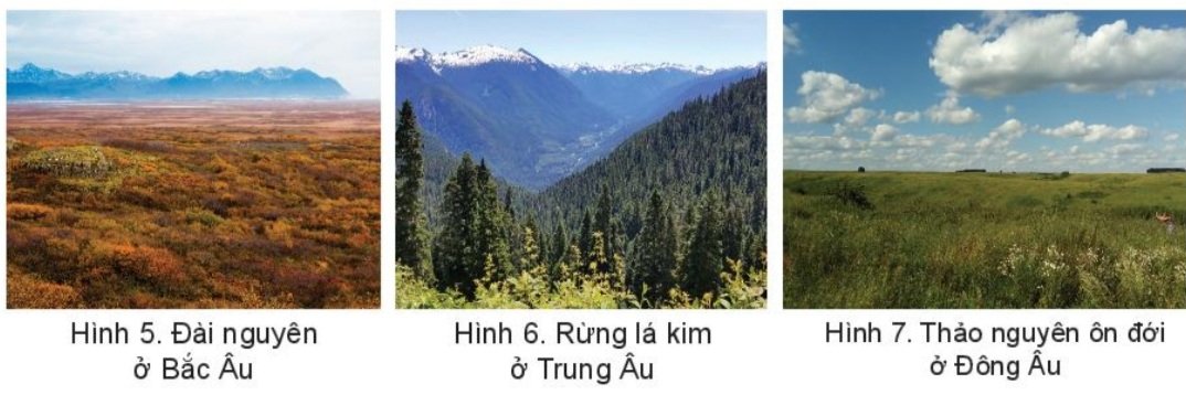 Đọc thông tin và quan sát các hình ảnh trong mục d, hãy trình bày đặc điểm các đới thiên nhiên ở châu Âu.
