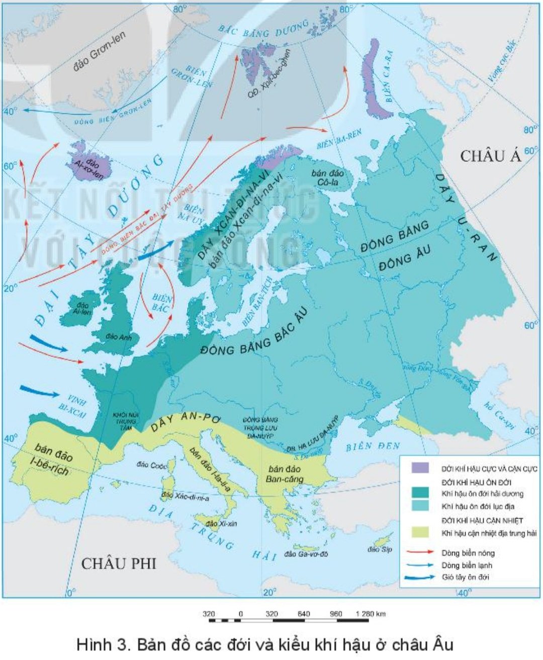 + Châu Âu thuộc 3 đới khí hậu: Cực và cận cực, ôn đới, cận nhiệt.
