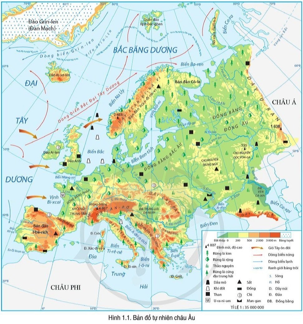 + Các dãy núi: D. An-pơ, D. Xcan-đi-na-vi, D. U-ran, D. Cac-pát, D. Cap-ca,...