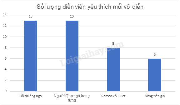 a) Lập bảng thống kê biểu diễn số lượng diễn viên yêu thích mỗi vở diễn.